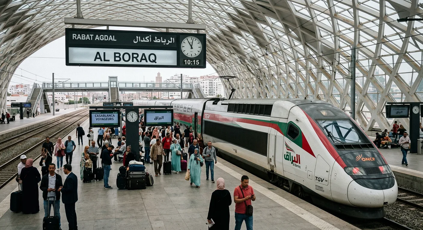 Trains are generally punctual. Arrive 15-20 minutes early. Platforms are announced on screens. Major stations: Casa-Voyageurs, Marrakech, Fes, Rabat-Ville.